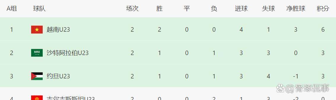 在A组积分榜上,越南以6分领跑,沙特和约旦紧随其后,分别积3分,而吉尔吉斯斯坦则暂时颗粒无收。然而,排名不过是瞬息万变,真正的较量还在最后一轮。究竟如何布局,悬念重重,引人遐想。